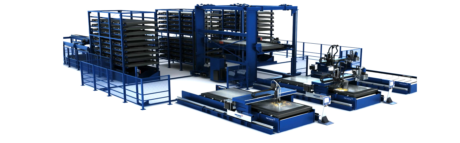 Una carga y descarga totalmente automatizada de máquinas de corte por plasma. Aprende más.