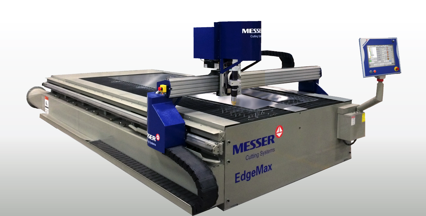 - EdgeMax de Messer Cutting Systems está construido para el corte por plasma y oxicorte junto con las herramientas de marcado. El EdgeMax está disponible en dos tipos de mesas de combustión: por zonas y por conductos, así como una mesa de agua. Esta máquina de corte unificado tiene anchos de mesa de corte de 6, 8 y 10 pies y longitudes de 12 o 24 pies. Las mesas zonificadas y canalizadas ofrecen una limpieza manual con puertas laterales que permiten recuperar fácilmente las piezas perdidas y eliminar la escoria con facilidad.